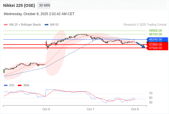 在 48240.00 之下,看跌,目标价位为 47800.00 ,然后为 47500.00 。