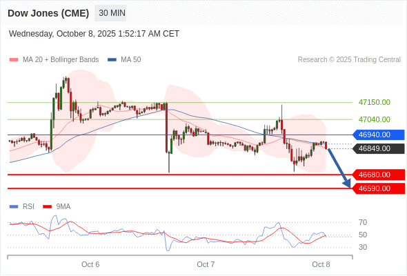 在 46940.00 之下,看跌,目标价位为 46680.00 ,然后为 46590.00 。