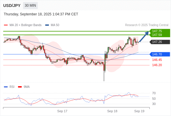 在 146.70 之上,看涨,目标价位为 147.50 ,然后为 147.75 。