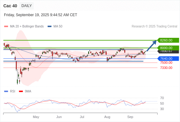 Cac 40 短线: 期待8000.00。
