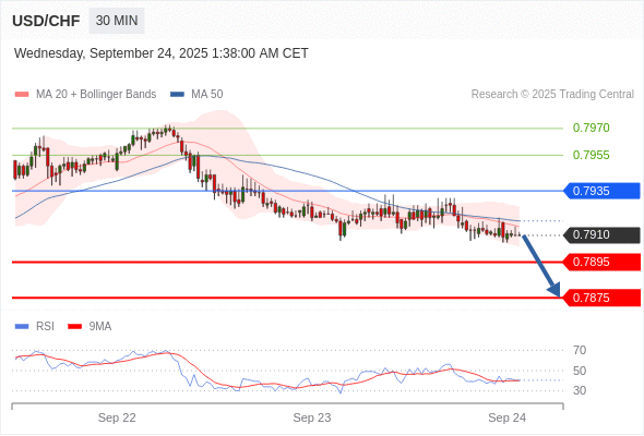 在 0.7935 之下,看跌,目标价位为 0.7895 ,然后为 0.7875 。