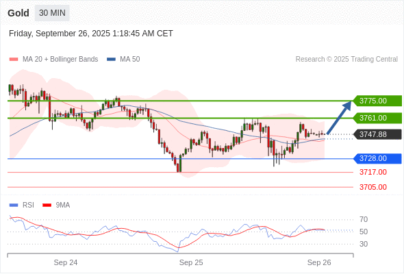 在 3728.00 之上,看涨,目标价位为 3761.00 ,然后为 3775.00 。