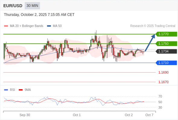 在 1.1710 之上,看涨,目标价位为 1.1750 ,然后为 1.1770 。