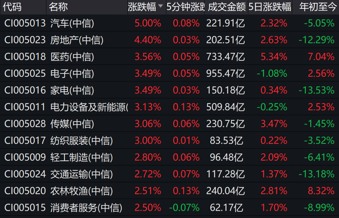 从盘面上看,前期超跌股全线反弹,大消费板块、农业、汽车、医疗器械等板块领涨。从消息面上看,今日汽车股板块领涨,源于各项政策利好不断释放。据悉,北京上半年将释放10万购车指标,杭州汽车限购措施放宽政策出炉 ,广州市提振汽车消费政策实施细则正在抓紧制定。