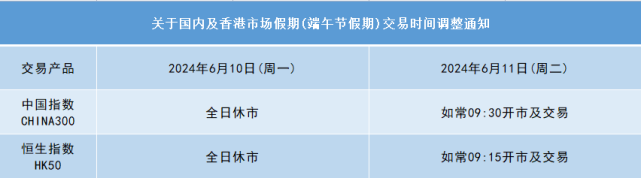 关于国内及香港市场假期(端午节假期)交易时间调整通知